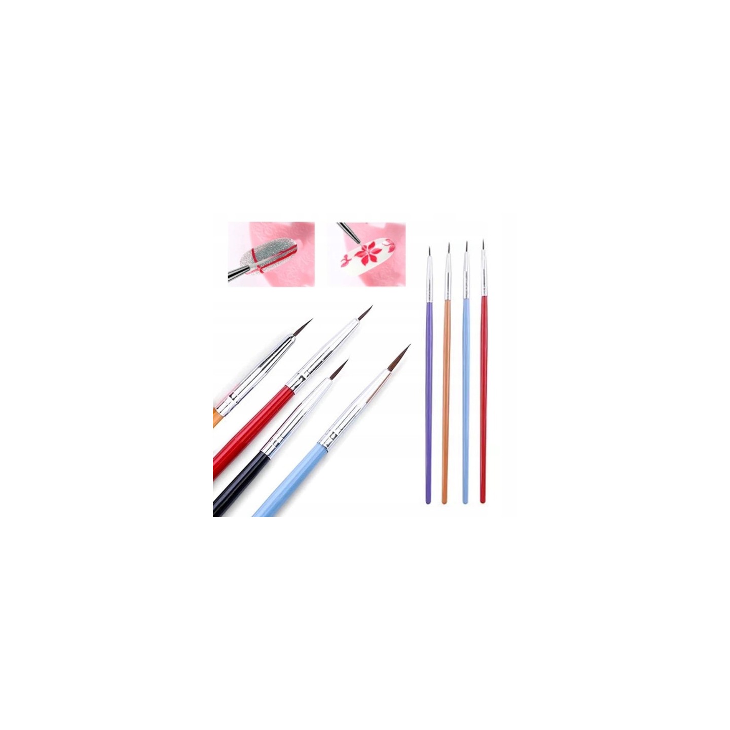 Een professionele set borstels voor het stylen van nagels. Unieke penselen gemaakt van de hoogste kwaliteit haren, speciaal ontworpen voor decoraties. 1 set bevat 4 stuks borstels, 4 verschillende maten borstels. Gebruikt voor het decoreren van hybride, klassieke, acryl- of gelmanicures. Speciaal geprofileerde borstelharen zorgen voor het hoogste gebruikscomfort en perfecte decoraties. Dankzij hen kunt u de meest veeleisende decoraties uitvoeren en het stylingeffect van uw dromen bereiken. De elegante look zal elke styling aangenamer maken.