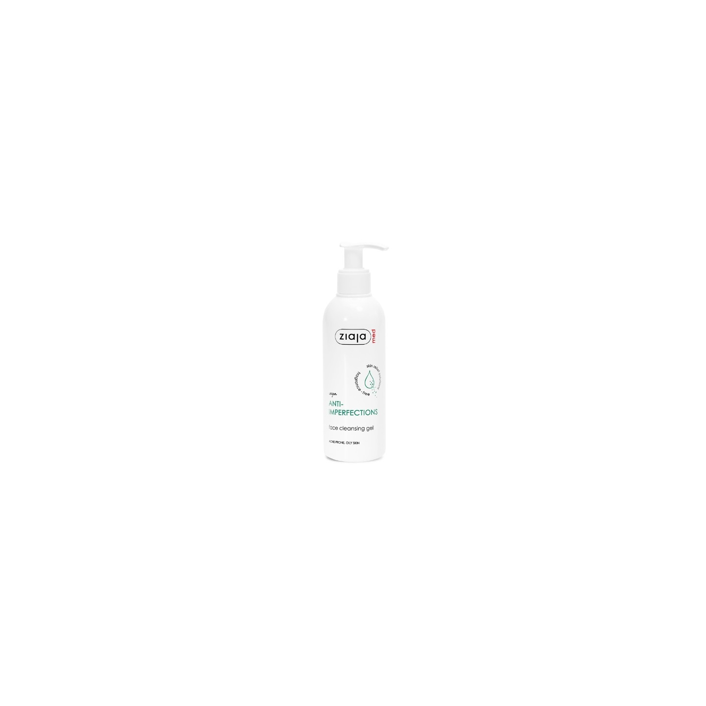 Das Gesichtsreinigungsgel Ziaja Med entfernt sanft Talg und Unreinheiten, lindert Akne-Läsionen und unterstützt die Pflege fettiger und empfindlicher Haut.