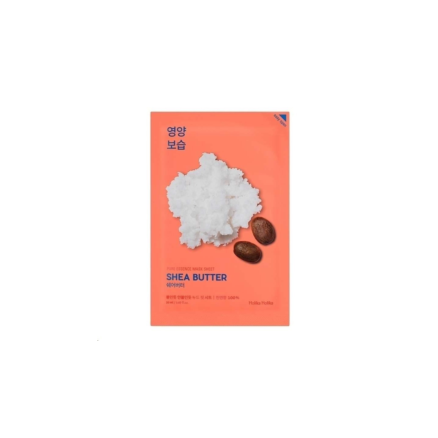 < strong > Holika Holika Pure Essence Mask Sheet - Shea butter - Masker op een katoenen laken met shea butter. Hydrateert, regenereert en maakt de huid glad.