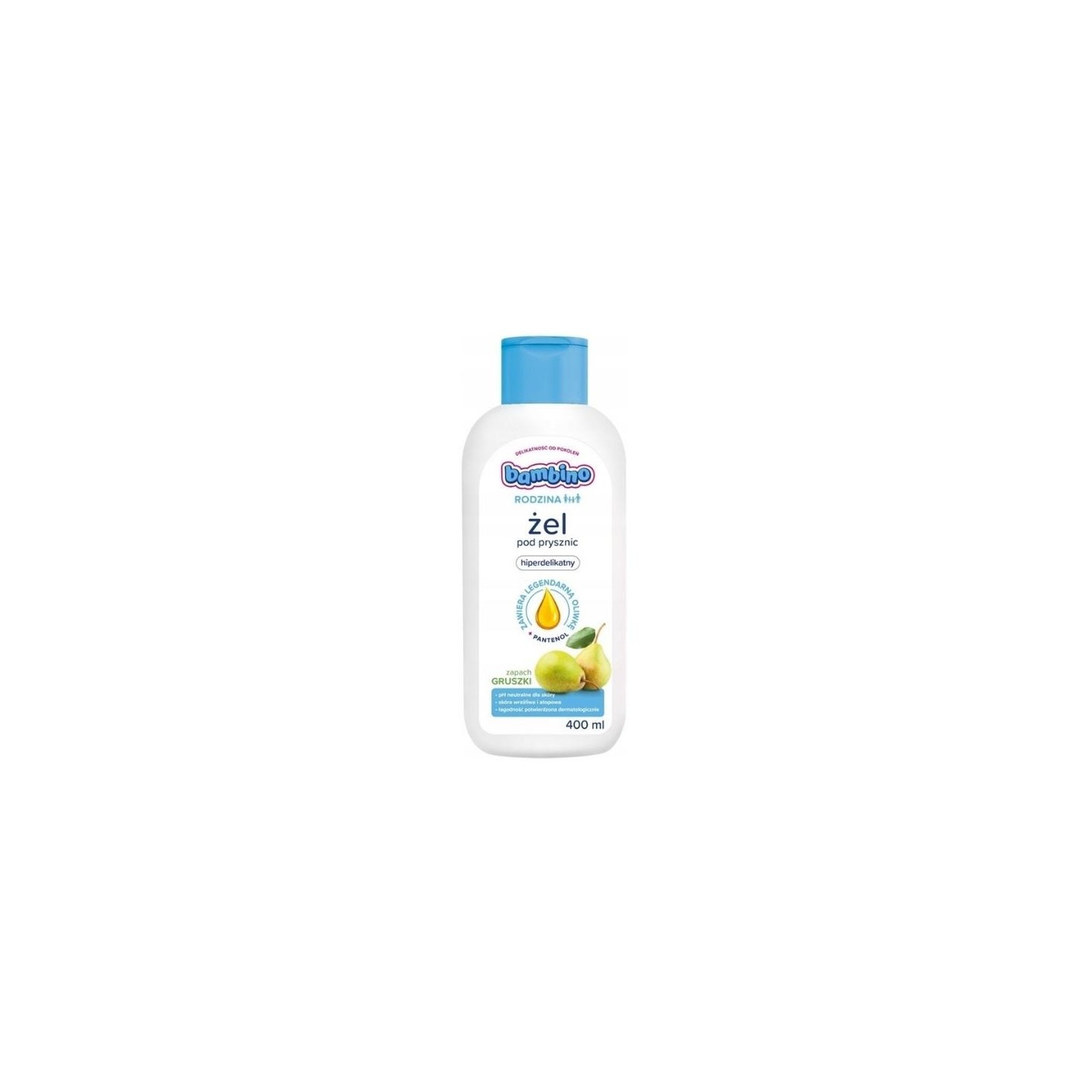 Een milde douche- i do badgel met een fruitige perengeur voor dagelijks gebruik. Bevat de legendarische Bambino-olijf en pantenol . Het houdt de huid goed gehydrateerd en voorkomt irritatie. Het beschermt de huid tegen uitdrogen en het gevoel van spanning.