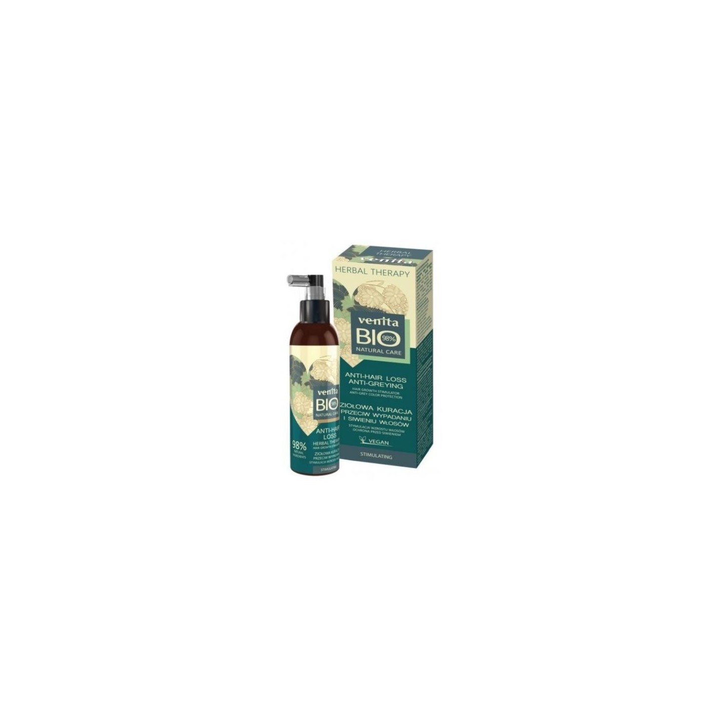 Kruidenbehandeling tegen haaruitval en vergrijzing. De samenstelling bevat 98% natuurlijke ingrediënten van plantaardige oorsprong met multidirectionele werking, rijk aan bioflavonoïden, oligosacchariden, mineralen en fytopigmenten. De formule van de lotion zorgt voor langdurig contact van actieve ingrediënten met het haar en de hoofdhuid.