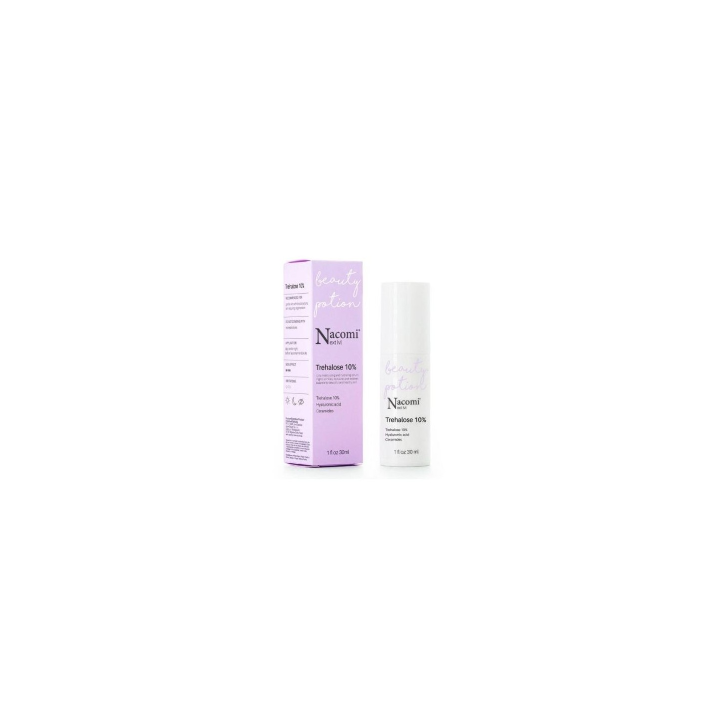 Nacomi Next Level Trehalose is een gezichtsserum met een concentratie van 10% trehalose. Het is gemaakt voor de verzorging van de droge, gevoelige en rijpe huid Het is een multifunctioneel serum Werkt anti-rimpel en geeft de huid een mooie en gezonde uitstraling. Serum verzacht roodheid en ontsteking van de huid. Dankzij het gehalte aan hyaluronzuur met verschillende deeltjesgroottes bereikt het de diepe lagen van de huid en zorgt voor diepe hydratatie. Beauty Potion creëert een delicate coating op de huid die effectief is beschermt de opperhuid tegen de nadelige effecten van externe factoren. De combinatie van zes natuurlijke aminozuren die van nature in het lichaam voorkomen gaat veroudering tegen en herstelt de huidbarrière.