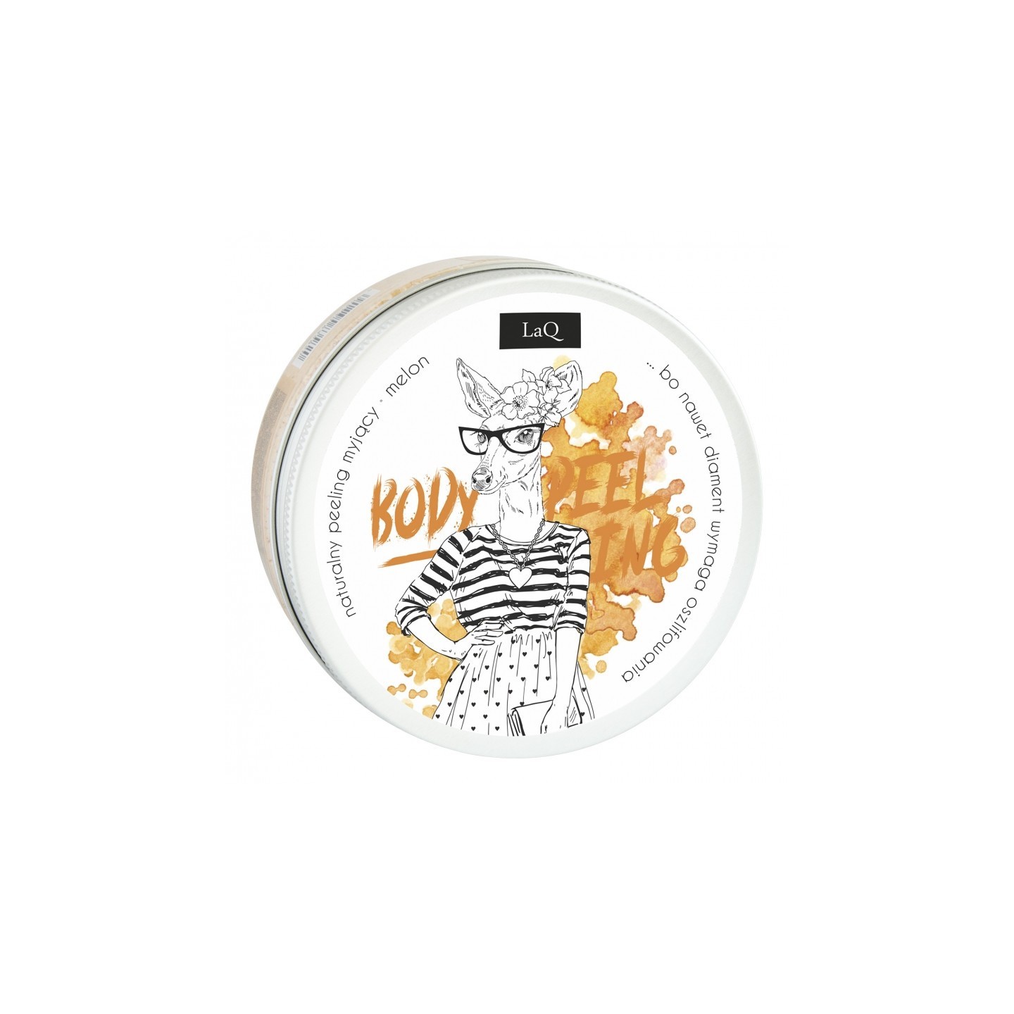 Scrub Peeling . Maar liefst 96% daarvan bestaat uit producten van natuurlijke oorsprong. Het is bedoeld voor gebruik op het hele lichaam. Het combineert de zachte werking van een scrub en een douchegel. Het is ontstaan op basis van bruine rietsuiker met toevoeging van sheaboter, plantaardige glycerine, vlasextract, havervlokken, rijstmelk, groene koffie-extract, kaneel, gember en paprika. Het heeft een innovatieve consistentie van schuimmousse met een verleidelijke meloengeur. Exfolieert zachtjes de dode opperhuid, verwijdert onzuiverheden, maakt perfect glad, verstevigt en hydrateert sterk