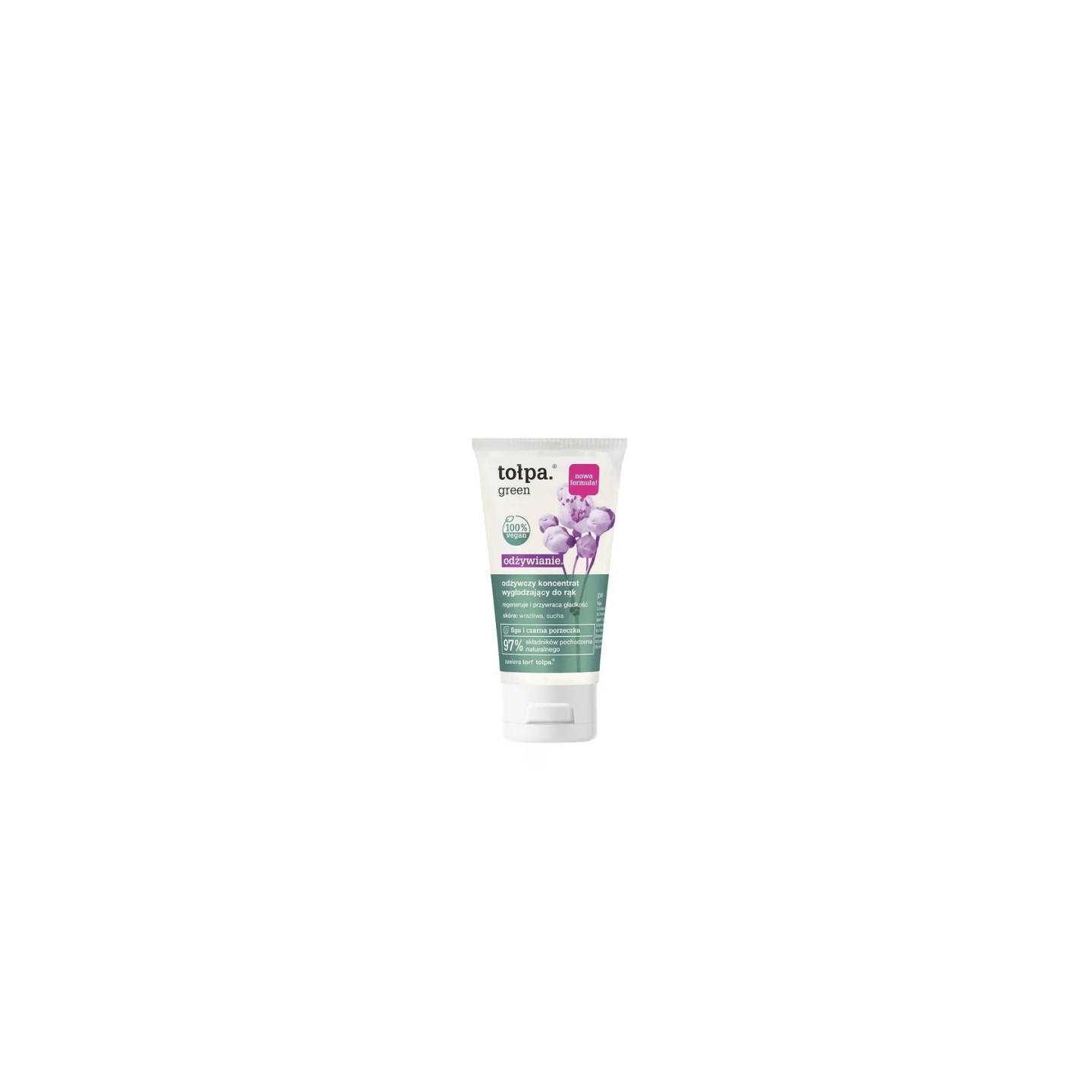 Een rijk handconcentraat, speciaal ontwikkeld voor de droge, ruwe huid die behoefte heeft aan regeneratie. De crème voedt, verzacht en verzacht de opperhuid intensief, waardoor de handen langdurig zacht en soepel blijven. Dankzij actieve ingrediënten zoals Tołpa®-turf, voedende plantaardige oliën en vochtinbrengende bestanddelen werkt het product als een regenererend kompres – zonder plakkerig of vettig te zijn. Ideaal voor dagelijks gebruik, vooral tijdens periodes van een drogere huid.