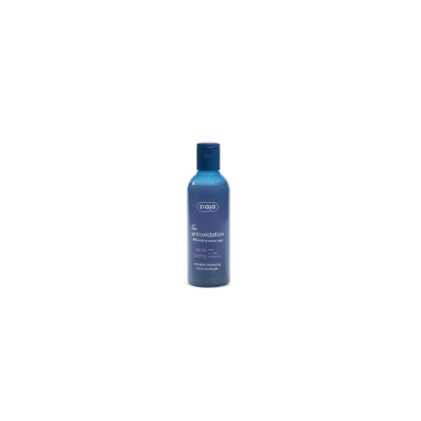 Міцелярний гель асаї з пілінгом ніжно очищає та розгладжує шкіру, підтримуючи зволоження та запобігаючи появі перших зморшок без мікропластику