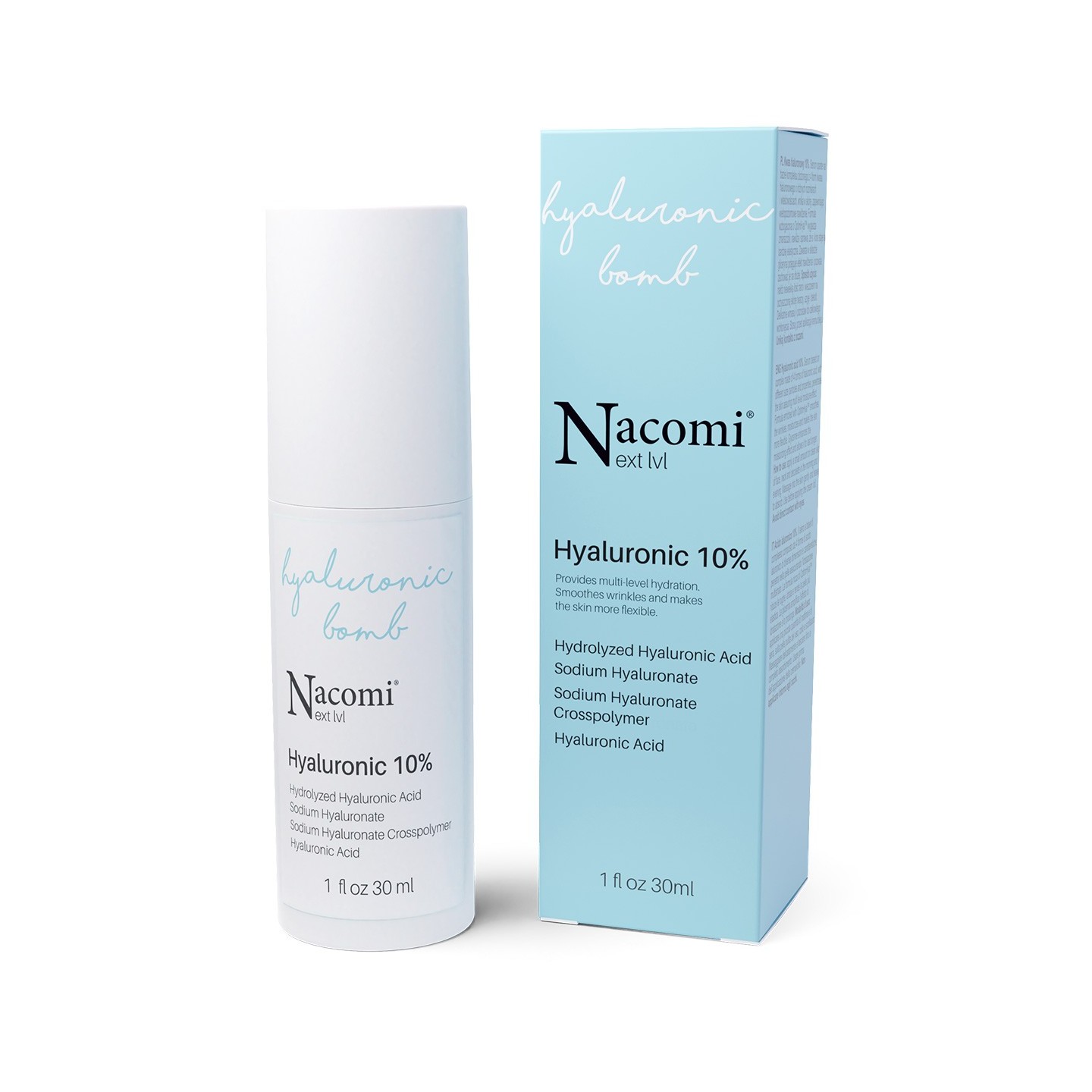 Serum на основі комплексу 4 форм кислоти гіалуронова кислота різних розмірів і властивостей, проникає в шкіру, забезпечує багаторівневе зволоження. Формула, збагачена OptimHyal™ розгладжує зморшки, зволожує та робить шкіру більш пружною еластичний. Гліцерин, що міститься в складі, посилює зволожуючий ефект дозволяє зберігати їх довше.
