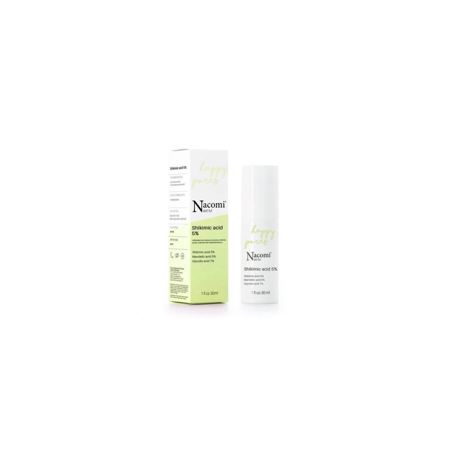 Нормалізуюча Serum для проблемної шкіри з чорними крапками та розширеними порами. Склад шикімової, гліколевої та мигдальної кислот відлущує роговий шар епідермісу, зменшує наявні недоліки та запобігає їх повторній появі. Це сприяє очищенню пір, мінімізує зміну кольору вугрів і стимулює колагенові волокна до відновлення. Шикімова кислота ніжно впливає на шкіру та чудово працює на шкірі, схильній до акне. Завдяки своїм властивостям не викликає почервоніння та подразнення шкіри під час пілінгу. Він розблоковує сальні залози, прискорює процес оновлення епідермісу і зволожує шкіру, підвищуючи її пружність і еластичність. Крім того, має антибактеріальну дію, вирівнює тон шкіри та освітлює колір обличчя.