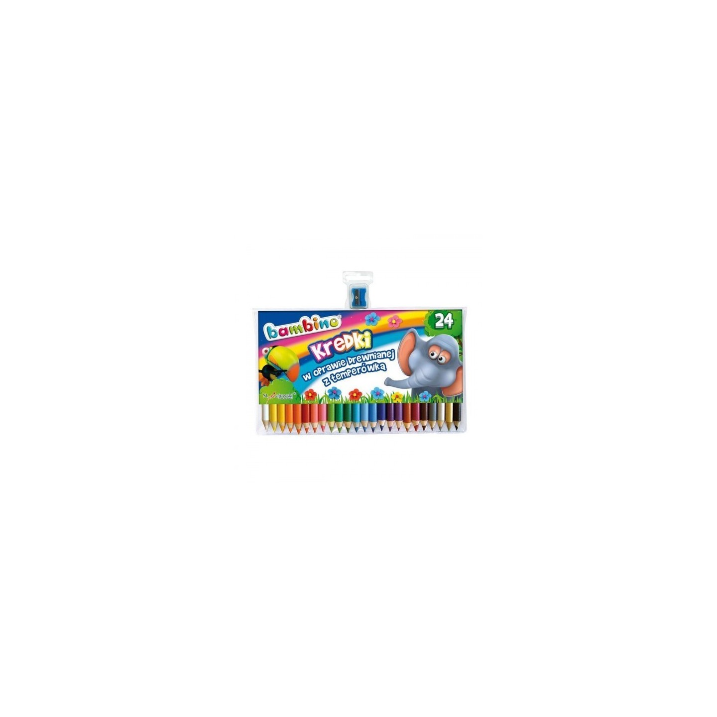 Дерев'яні олівці BAMBINO 24 кольори – ідеальний інструмент для творчого малювання та живопису для дітей. Дерев'яна рамка забезпечує міцність та комфорт використання, а каоліновий грифель гарантує м'яке використання, інтенсивне покриття та легке заточування без крихт. Набір містить 24 насичені кольори, включаючи золоті та срібні олівці, що дозволяє створювати вражаючі, барвисті роботи та цікаві деталі. Олівці добре збалансовані та товсті, що робить їх ідеальними для маленької дитячої ручки. Польське виробництво та відповідність стандартам безпеки іграшок гарантують батькам якість та безпеку. si комплекті практична точилка.