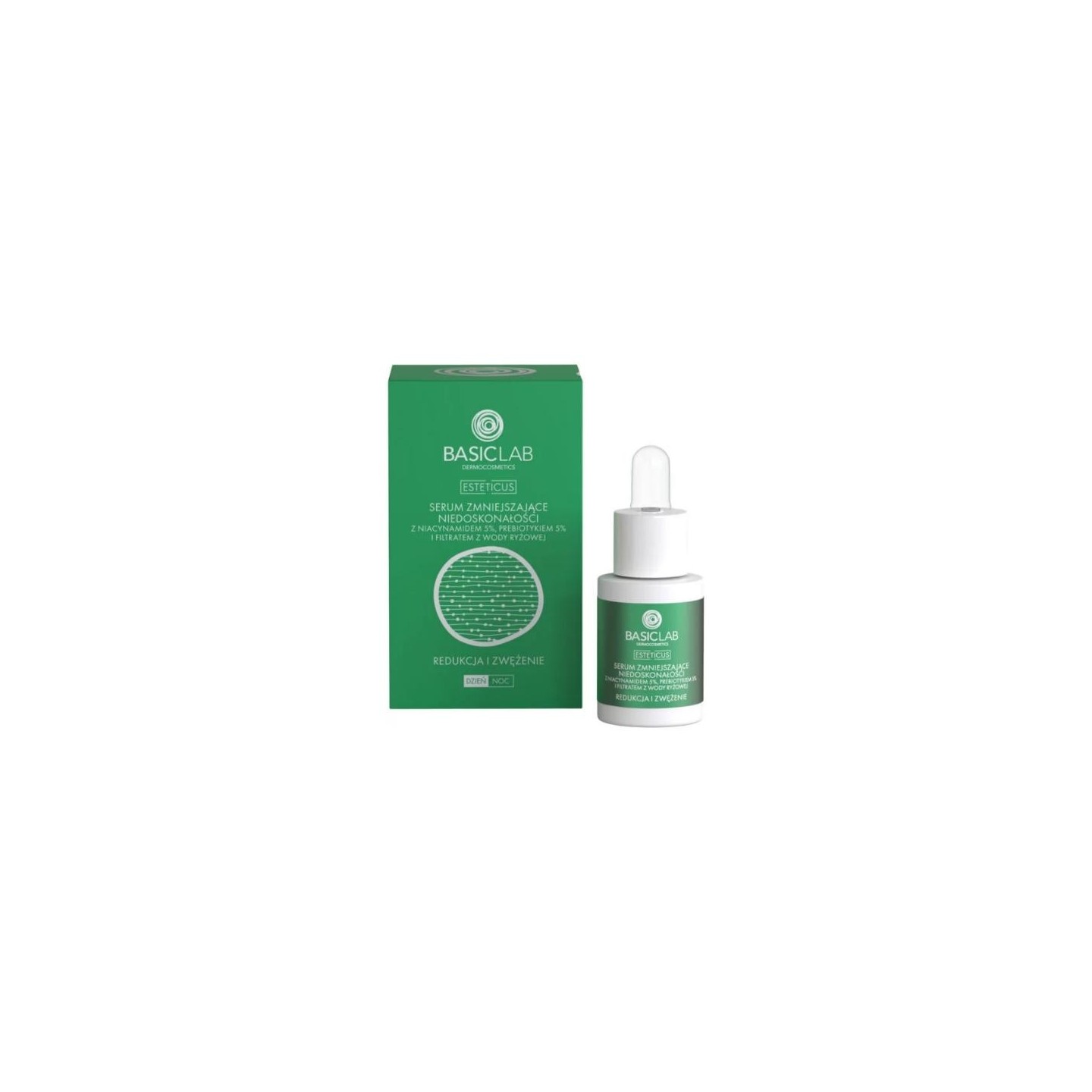- 5% концентрація ніацинаміду (вітамін В3) ефективно регулює роботу сальних залоз, сприяючи належному виділенню шкірного сала та зменшуючи видимість пор. Ніацинамід рекомендується для сухої, гіперчутливої, схильної до зміни кольору, зрілої шкіри та шкіри, схильної до вугрів. Відомий своїми властивостями проти зморшок, він зменшує тонкі лінії, розгладжує та помітно покращує структуру та тонус шкіри. Найкращий ефект помітний через 12 тижнів систематичного застосування. Крім того, це інгредієнт, який стимулює вироблення церамідів, а отже, ліпідів, тому безпосередньо покращує ліпідний бар’єр епідермісу.