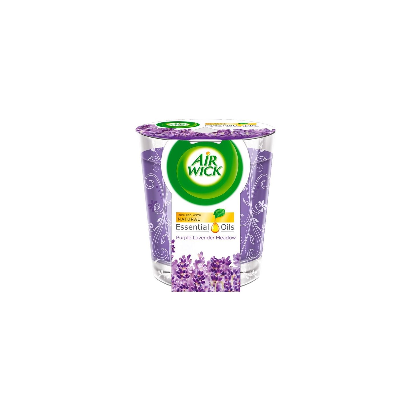 Свічка Airwick Purple Lavender Meadow створює теплу та затишну атмосферу, ідеальну для відпочинку вдома.